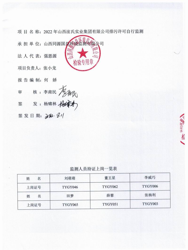 山西泫氏2022年3季度監(jiān)測(cè)報(bào)告